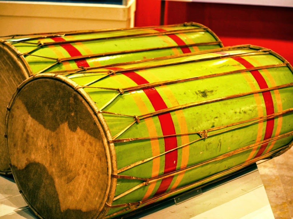 Gendang terbuat dari kayu dengan selaput.